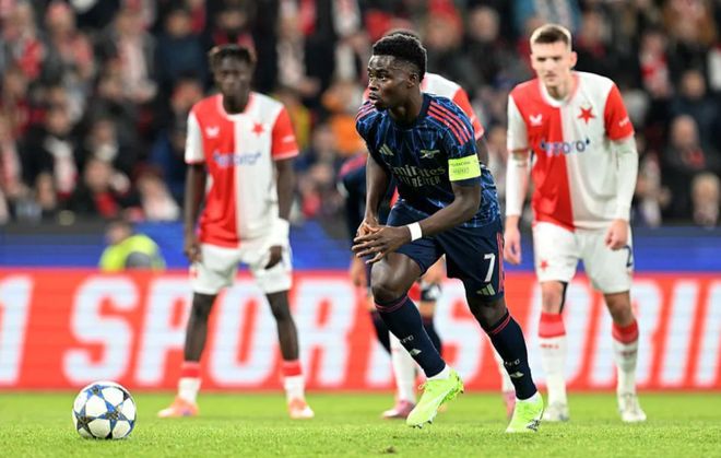 這個進球,讓薩卡改寫了阿森納紀錄,成為隊史首位連續四個歐冠客場比賽都取得進球的球員。